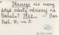 Dlaczego nie mamy dotąd szkoły rolniczej na Podhalu? 1922...