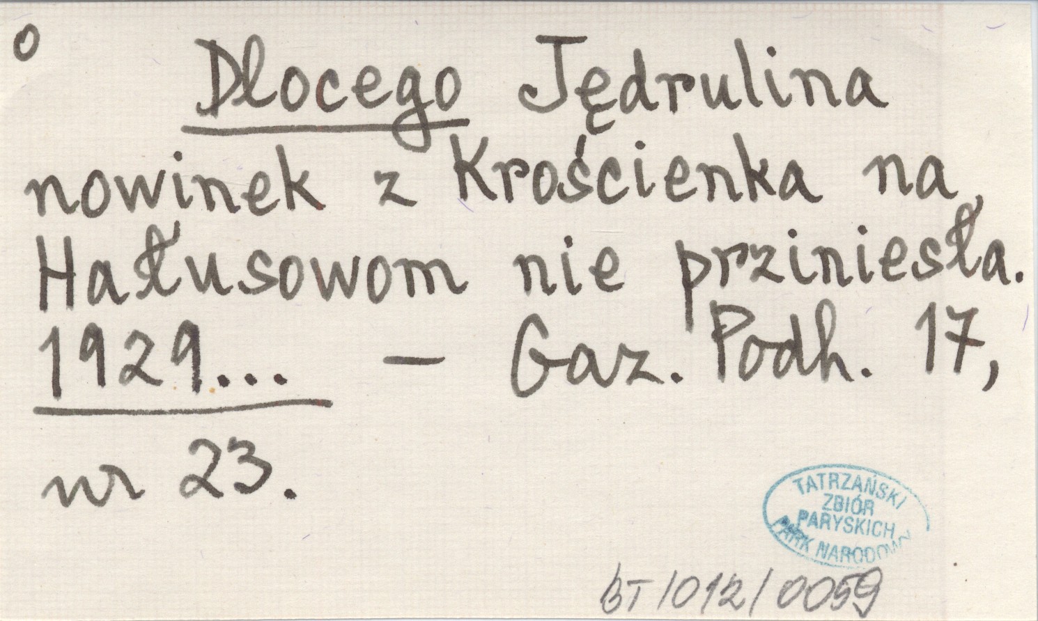 Dlocego Jędrulina nowinek z Krościenka na Hałusowom nie prziniesła. 1929...