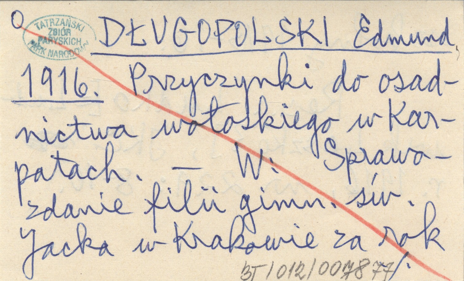 DŁUGOPOLSKI Edmund 1916 Przyczynki do osadnictwa wołoskiego w Karpatach.