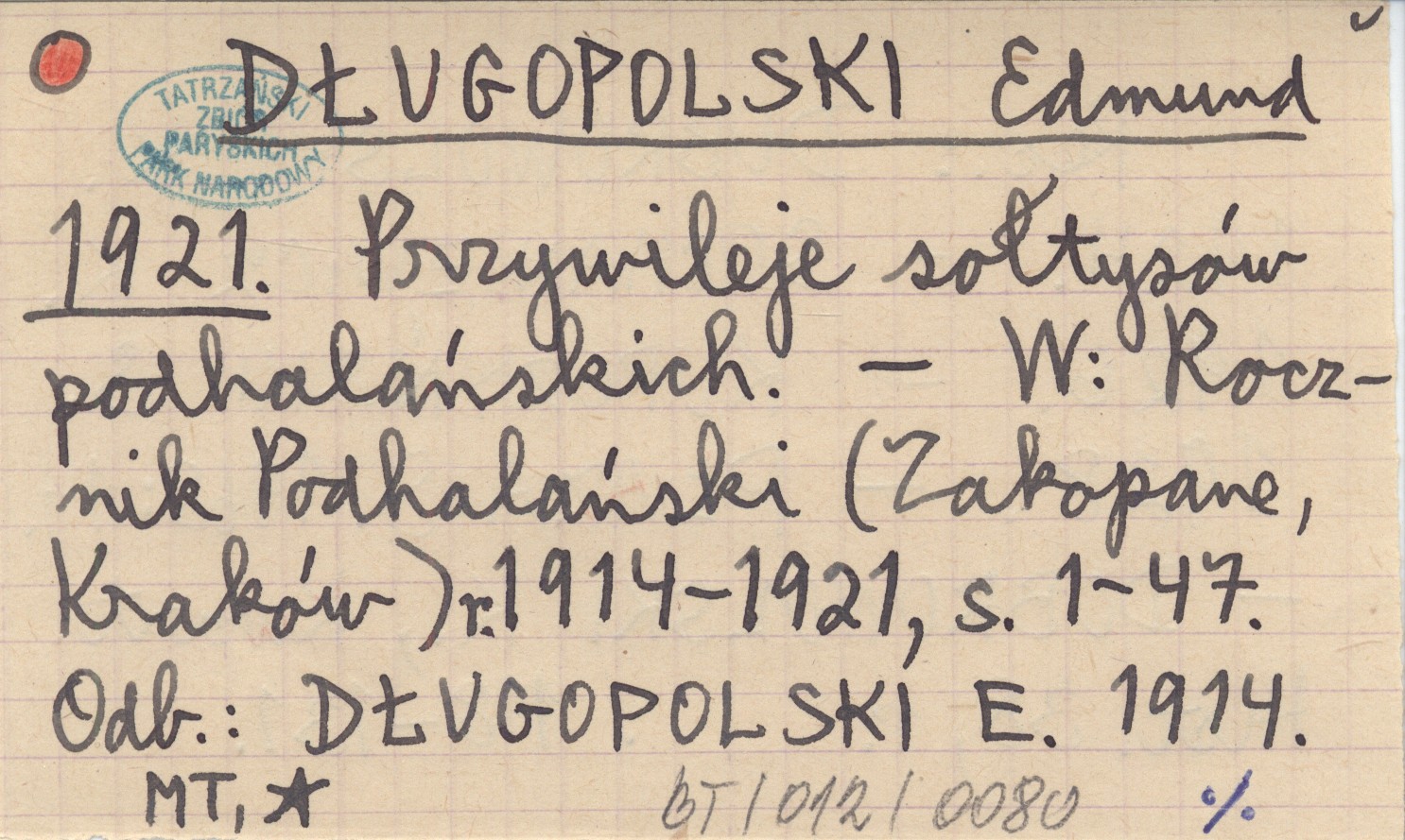 Rocznik Podhalański (Zakopane, Kraków) , R. 1914-1921: 1-47. Odb.: DŁUGOPOLSKI E. 1914. REC: DOBROWOLSKI K. 1924 ; SOCHANIEWICZ K. 1926 ; KUPCZYŃSKI S. 1928 ; PŁAZA S. 1968: 14. ; DOBROWOLSKI K., Kwartalnik Historyczny 38: 118-131. ;