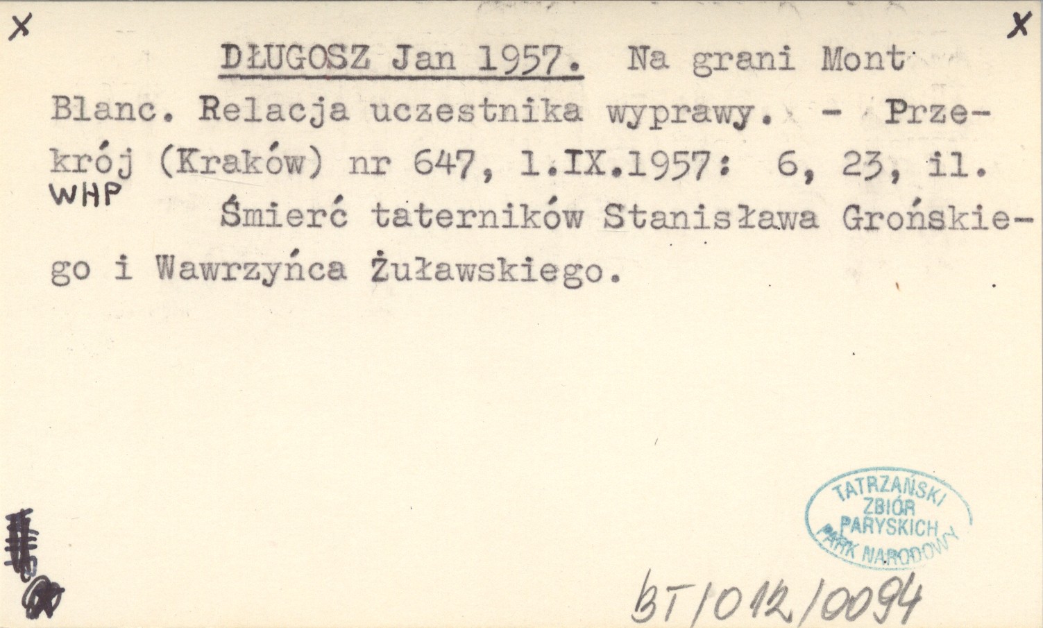Przekrój (Kraków) , Nr 647 (1 IX 1957): 6, 23, il. Śmierć taterników Stanisława Grońskiego i Wawrzyńca Żuławskiego.