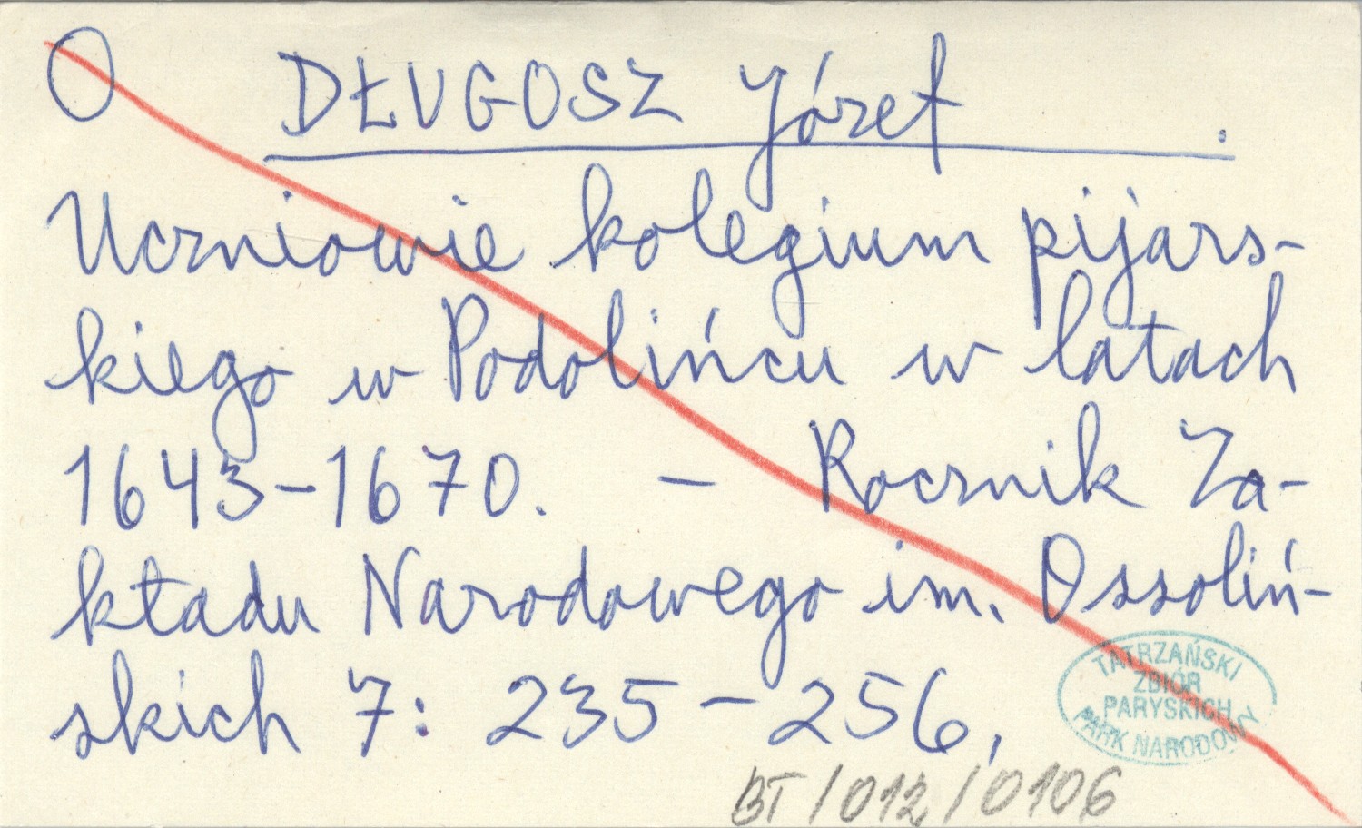DŁUGOSZ Józef Uczniowie kolegium pijarskiego w Podolińcu w latach 1643-1670.