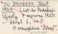 DŁUGOSZ Józef 1925 List do Redakcji. Ujsoły. 7 czerwca 1925.