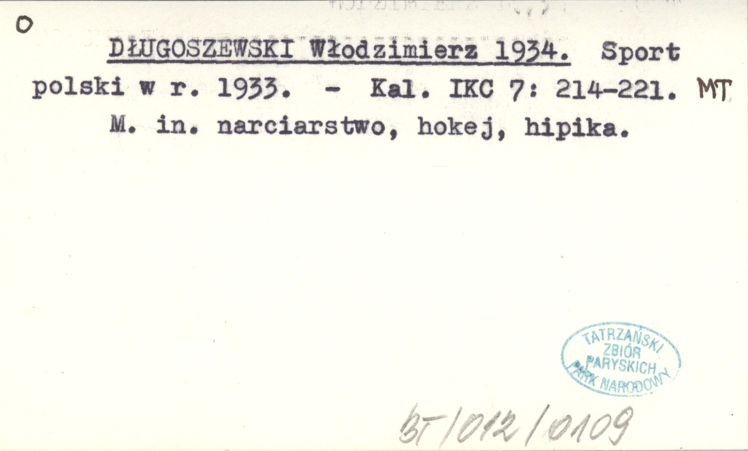 Kal. Ilustrowany Kuryer Codzienny, 7: 214-221. M. in. narciarstwo, hokej, hipika.