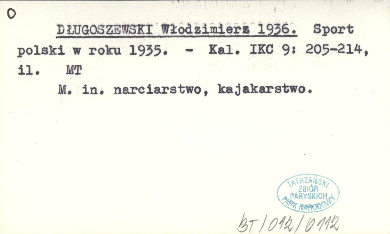 DŁUGOSZEWSKI Włodzimierz 1936 Sport polski w roku 1935.