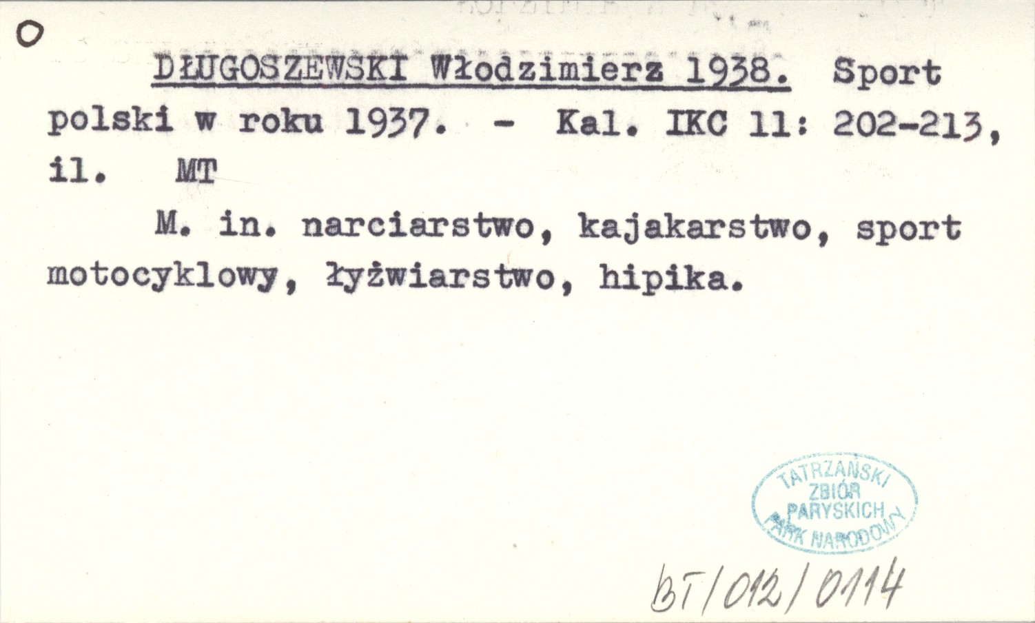 DŁUGOSZEWSKI Włodzimierz 1938 Sport polski w roku 1937.