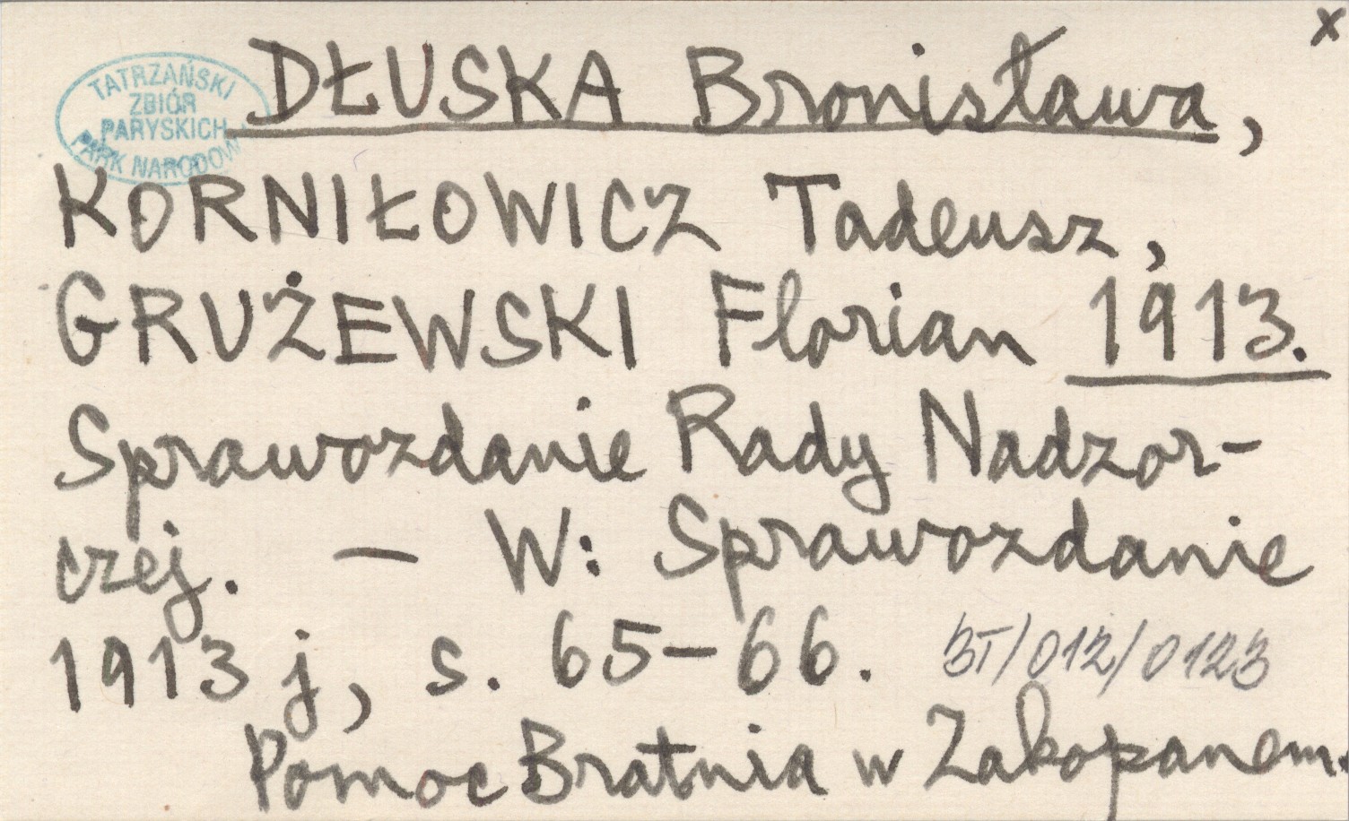 Sprawozdanie 1913 j , S. 65-66. Pomoc Bratnia w Zakopanem.