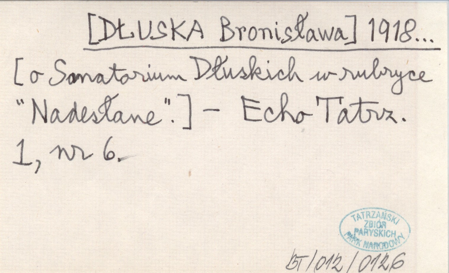 Echo Tatrzańskie, 1, nr 6. [O Sanatorium Dłuskich w rubryce "Nadesłane".]