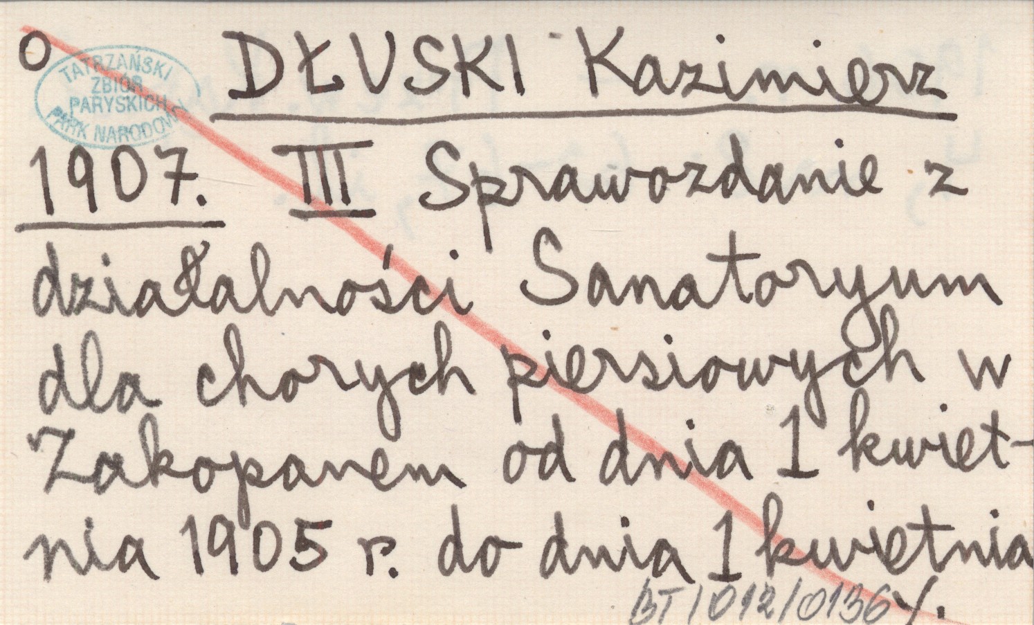DŁUSKI Kazimierz 1907 III Sprawozdanie z działalności Sanatoryum dla chorych piersiowych w Zakopanem od dnia 1 kwietnia 1905 r. do dnia 1 kwietnia 1906 r.