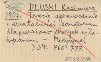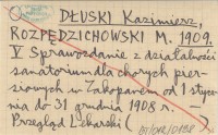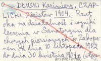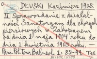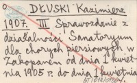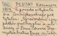 DŁUSKI Kazimierz 1904 Z powodu artykułu dra Żenczykowskiego pod tytułem: "Sprawozdanie z przypadków gruźlicy płuc u młodzieży w Domu Zdrowia Towarzystwa Bratnia Pomoc w Zakopanem".