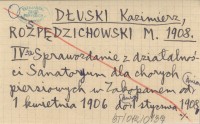 DŁUSKI Kazimierz ROZPĘDZICHOWSKI, M. ; 1909 V Sprawozdanie z działalności sanatorium dla chorych piersiowych w Zakopanem od 1 stycznia do 31 grudnia 1908 r.