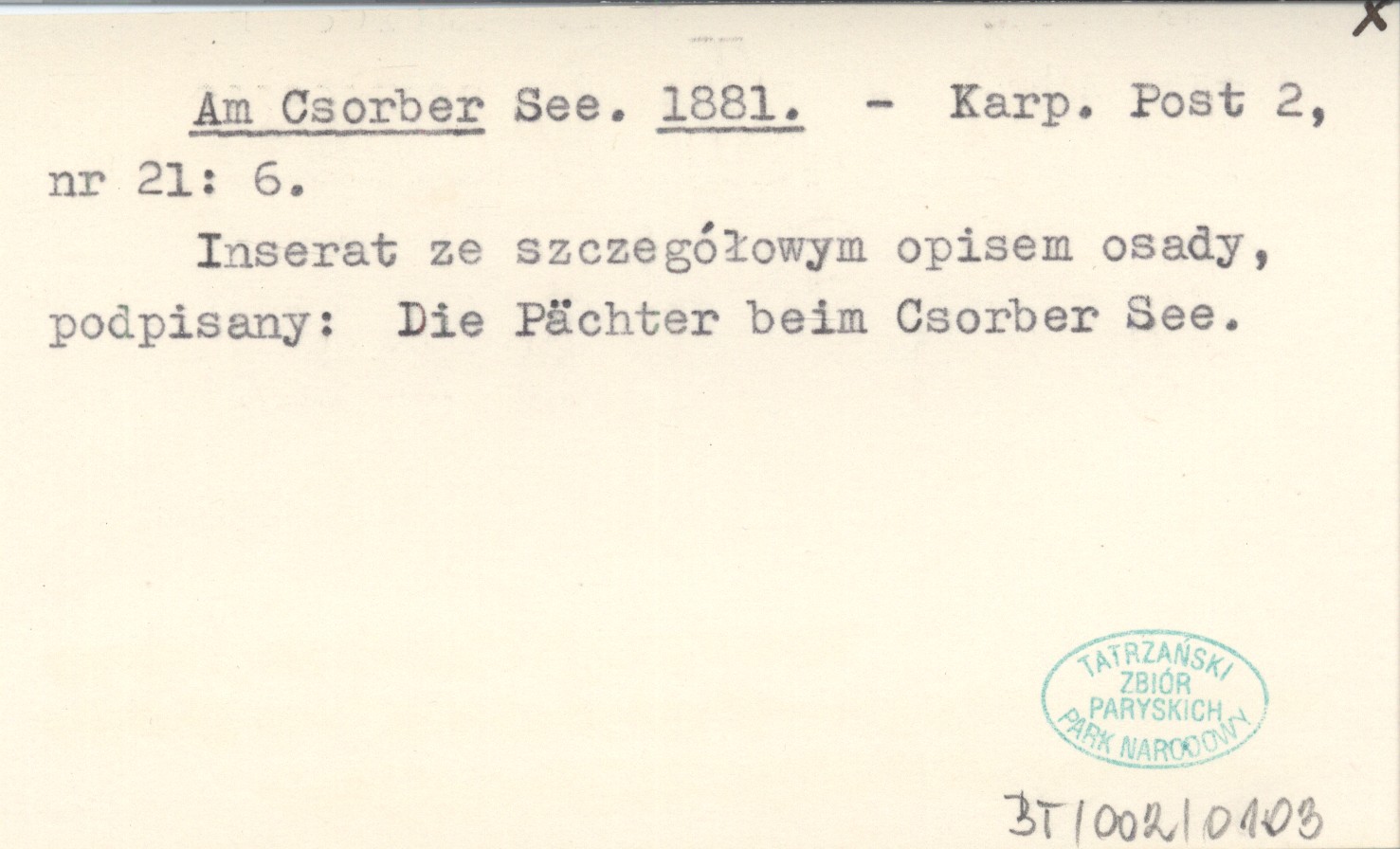 Karpathen-Post, 2, nr 21: 6. Inserat ze szczegółowym opisem osady, podpisany: Die Pächter beim Csorber See.