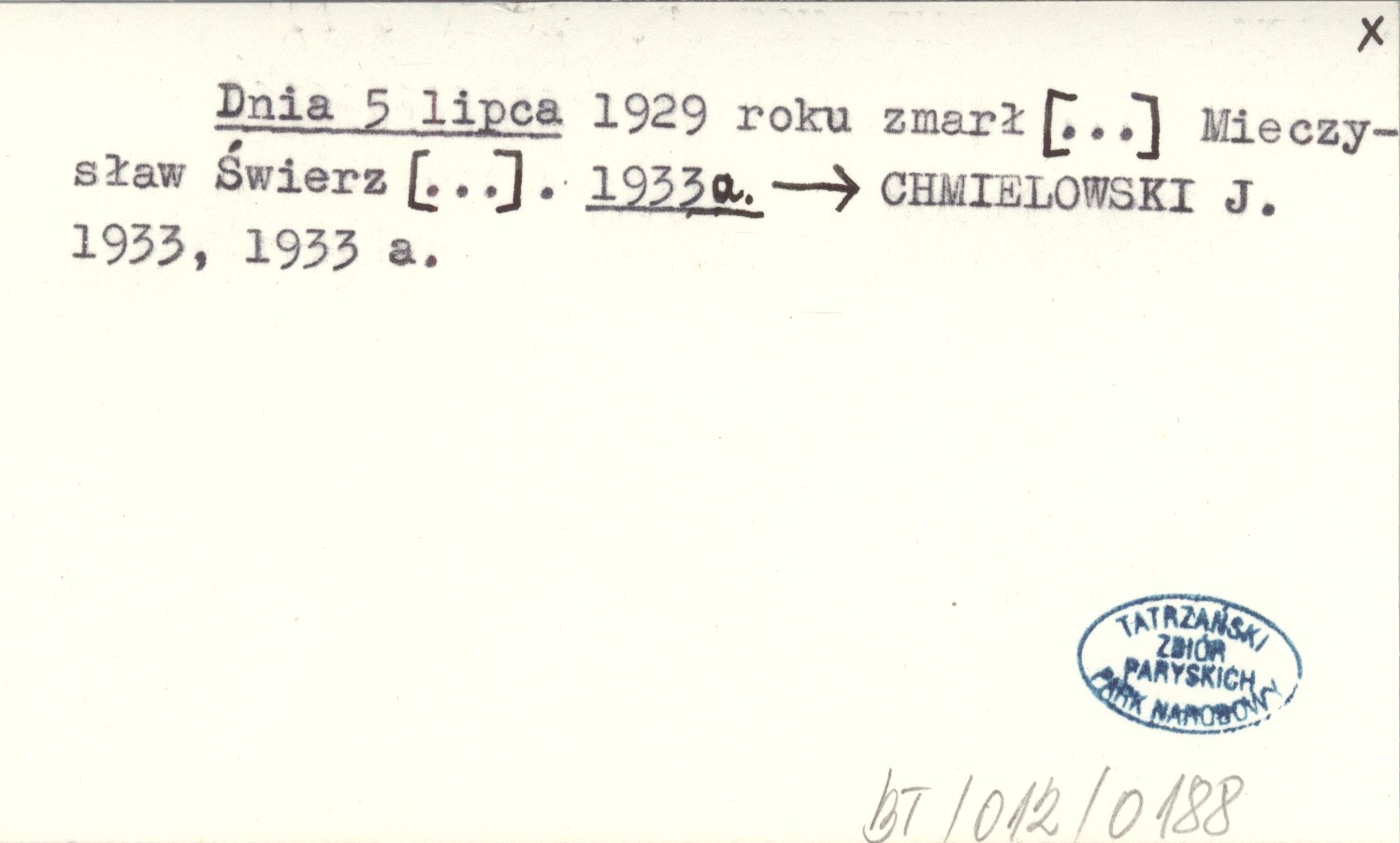 Dnia 5 lipca 1929 roku zmarł [...] Mieczysław Świerz [...]. 1933 a