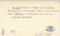 Do rąk własnych JWPana prof. J. Schafera, prezesa Państwowej Rady Ochrony Przyrody. 1934 a
