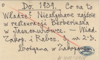Do. 1939 Co na to Władze? Niesłychane zajście w restauracji Berberiusza w Jaszczurówce.