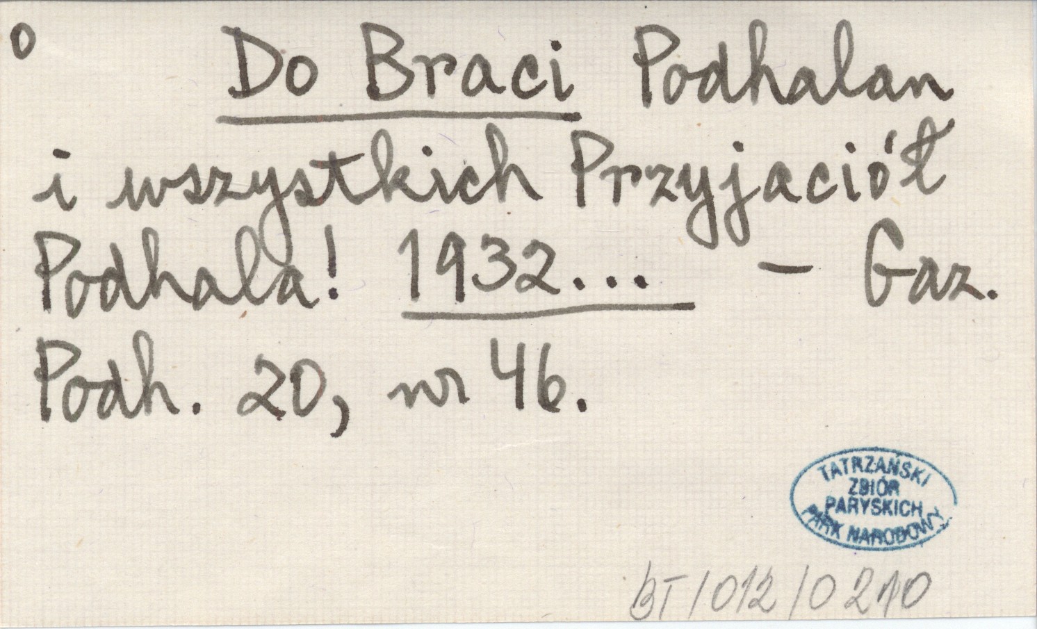 Do Braci Podhalan i wszystkich Przyjaciół Podhala! 1932...