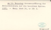 Am 19. Dezember Pressevorführung der Seolschwebebahn auf die Lomnitzer Spitze. 1937