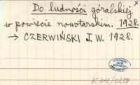 Do ludności góralskiej w powiecie nowotarskim. 1928