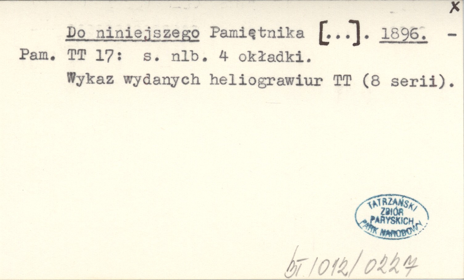 Pamiętnik Towarzystwa Tatrzańskiego, 17: [4] s. okł. Wykaz wydanych heliograwiur TT (8 serii).