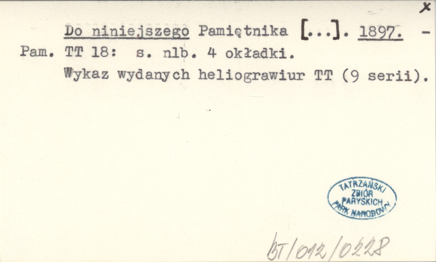 Pamiętnik Towarzystwa Tatrzańskiego, 18: [4] s. okł. Wykaz wydanych heliograwiur TT (9 serii).