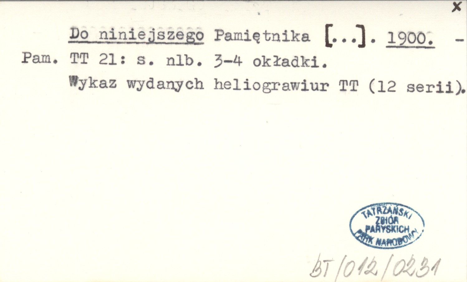 Pamiętnik Towarzystwa Tatrzańskiego, 21: [3-4] okł.