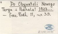 Do Obywateli Nowego Targu i Podhala! 1923...