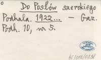 Do Posłów szerokiego Podhala. 1922...