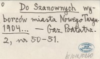 Do Szanownych wyborców miasta Nowego Targu. 1904...