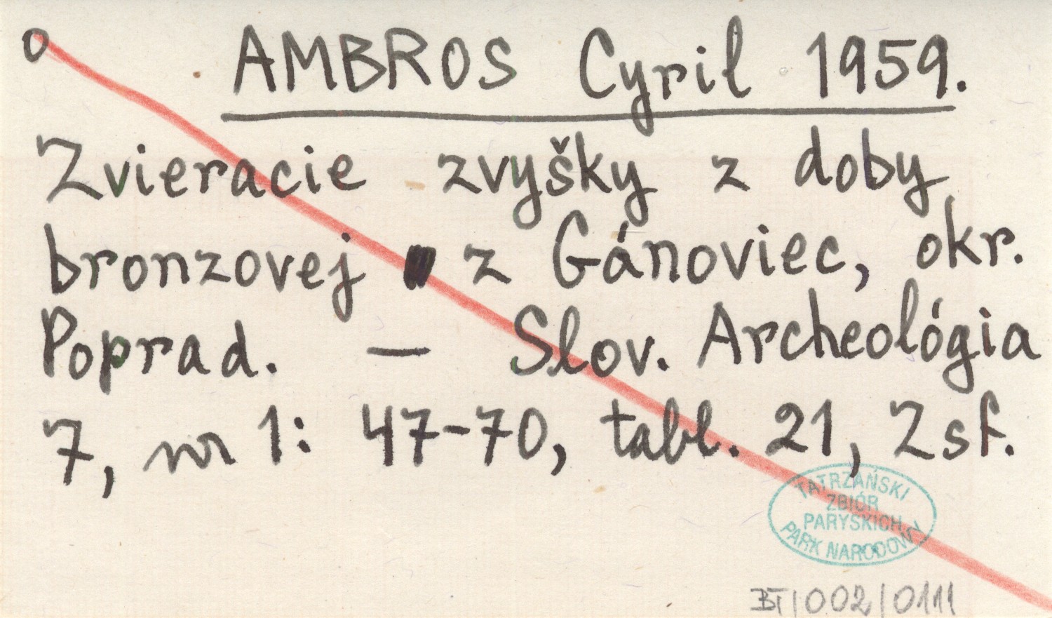AMBROS Cyril 1959 Zvieracie zvyšky z doby bronzovej z Gánoviec, okr. Poprad.