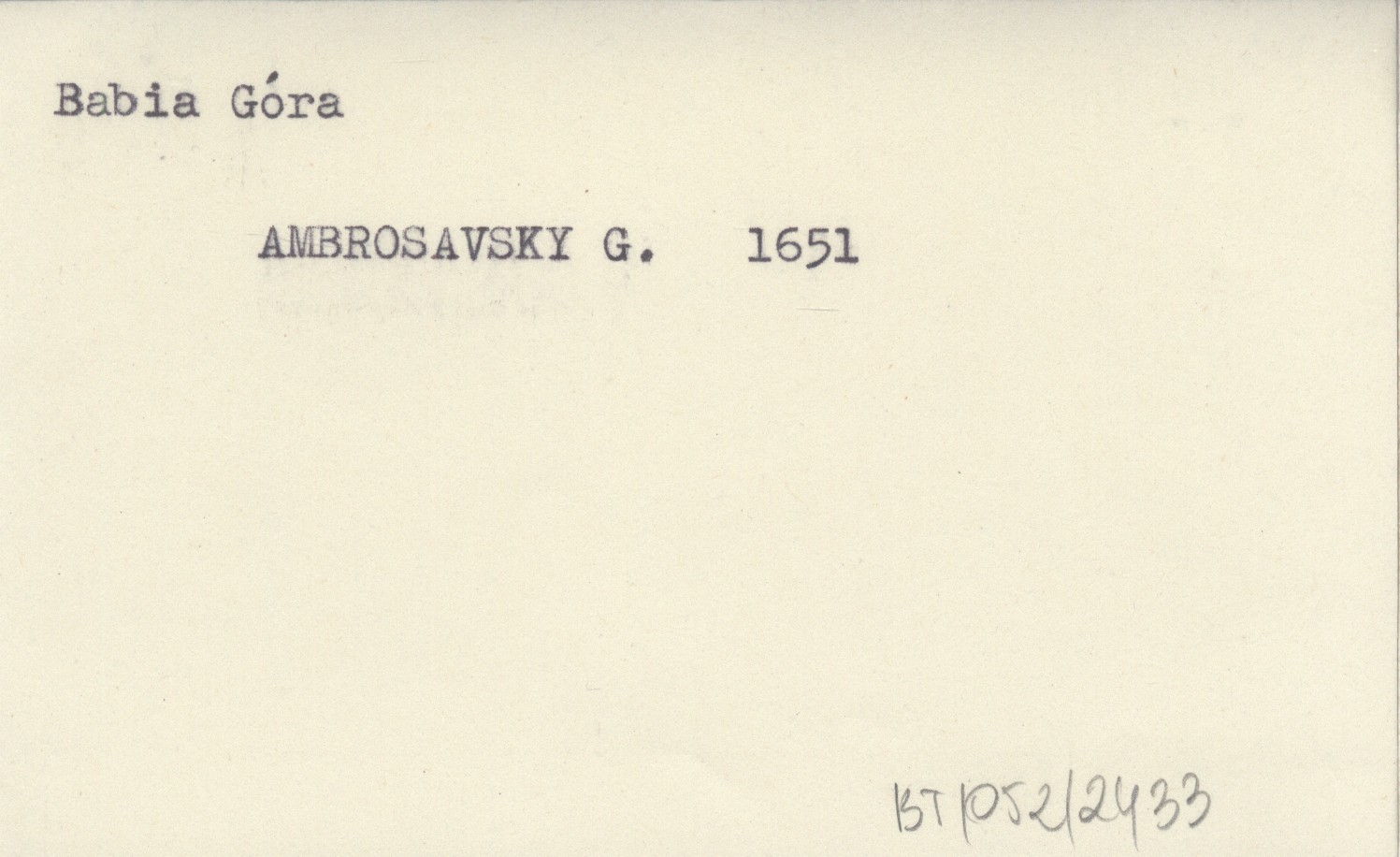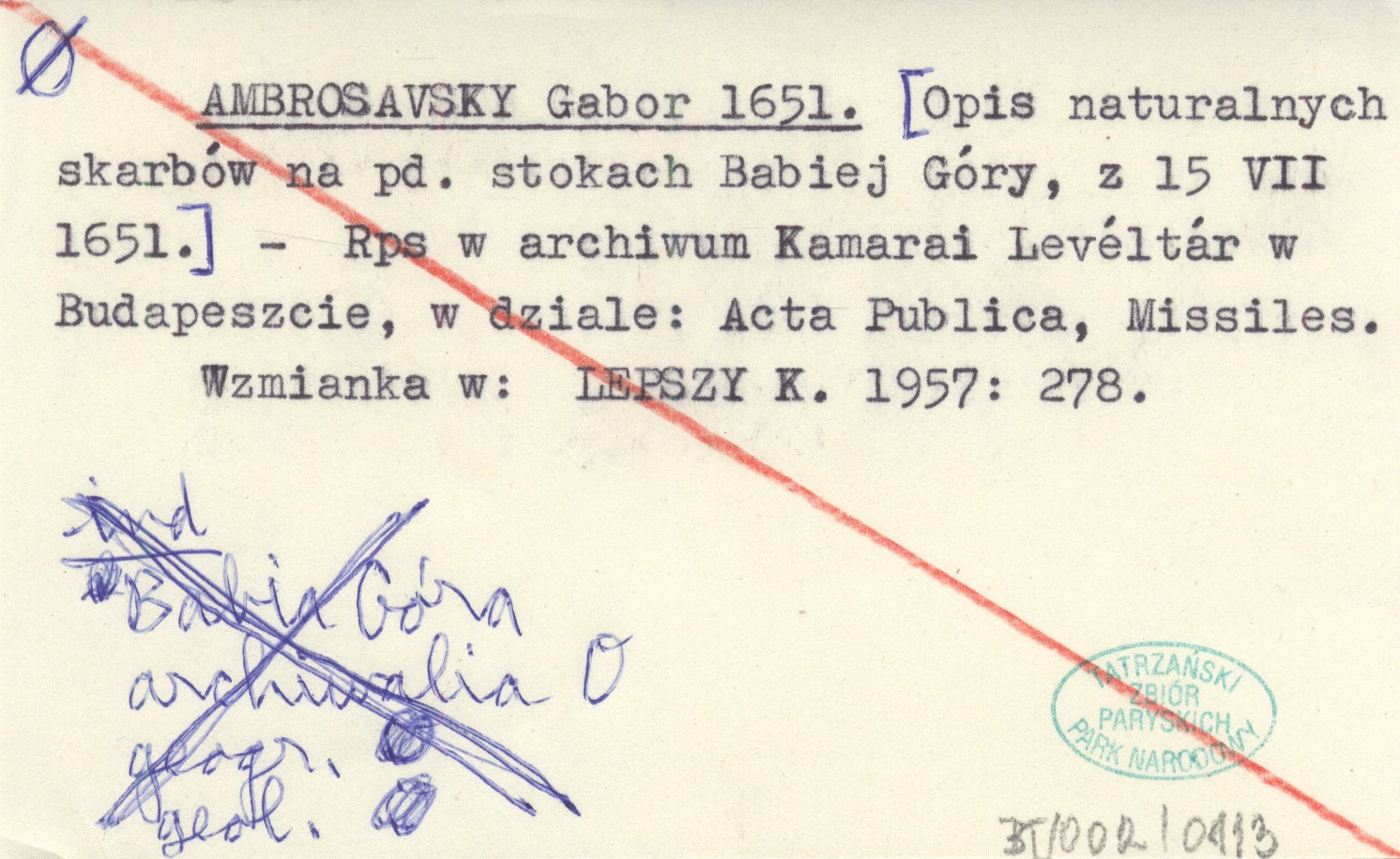 AMBROSAVSKY Gabor 1651 [Opis naturalnych skarbów na pd. stokach Babiej Góry, z 15 VII 1651.]