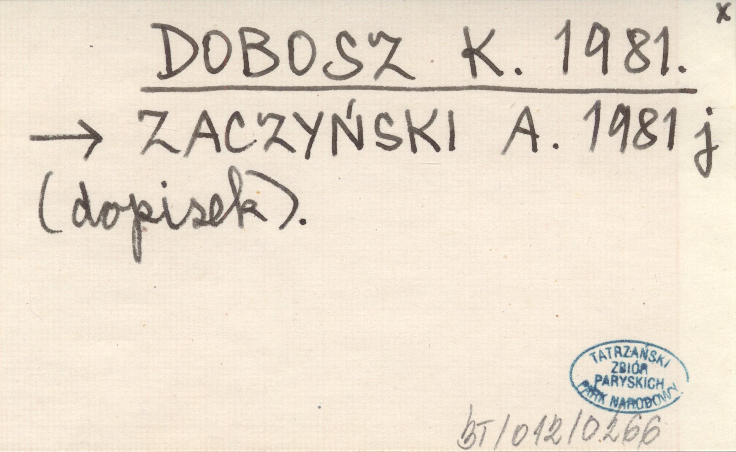 ZACZYŃSKI A. 1981 j (dopisek)