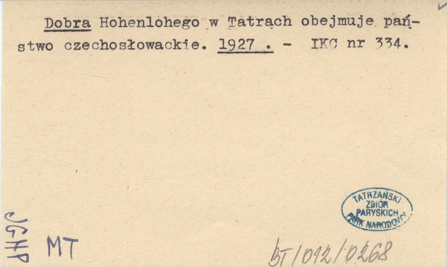 Dobra Hohenlohego w Tatrach obejmuje państwo czechosłowackie. 1927