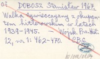 DOBOSZ Stanisław 1967 Walka żywiecczyzny z okupantem hitlerowskim w latach 1939-1945.