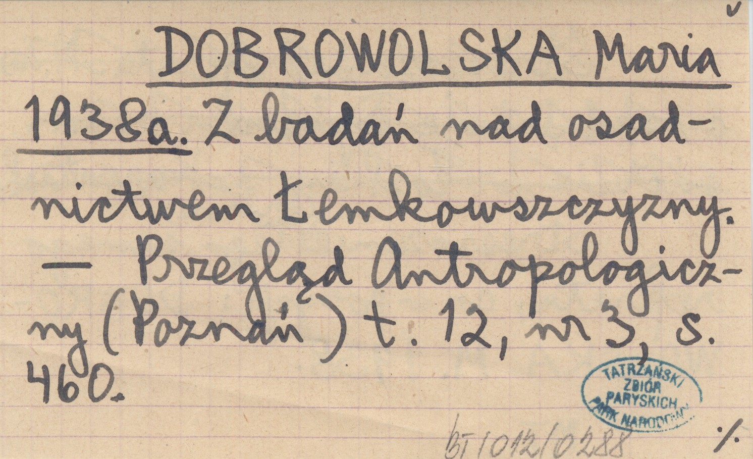 DOBROWOLSKA Maria 1938 a Z badań nad osadnictwem Łemkowszczyzny.