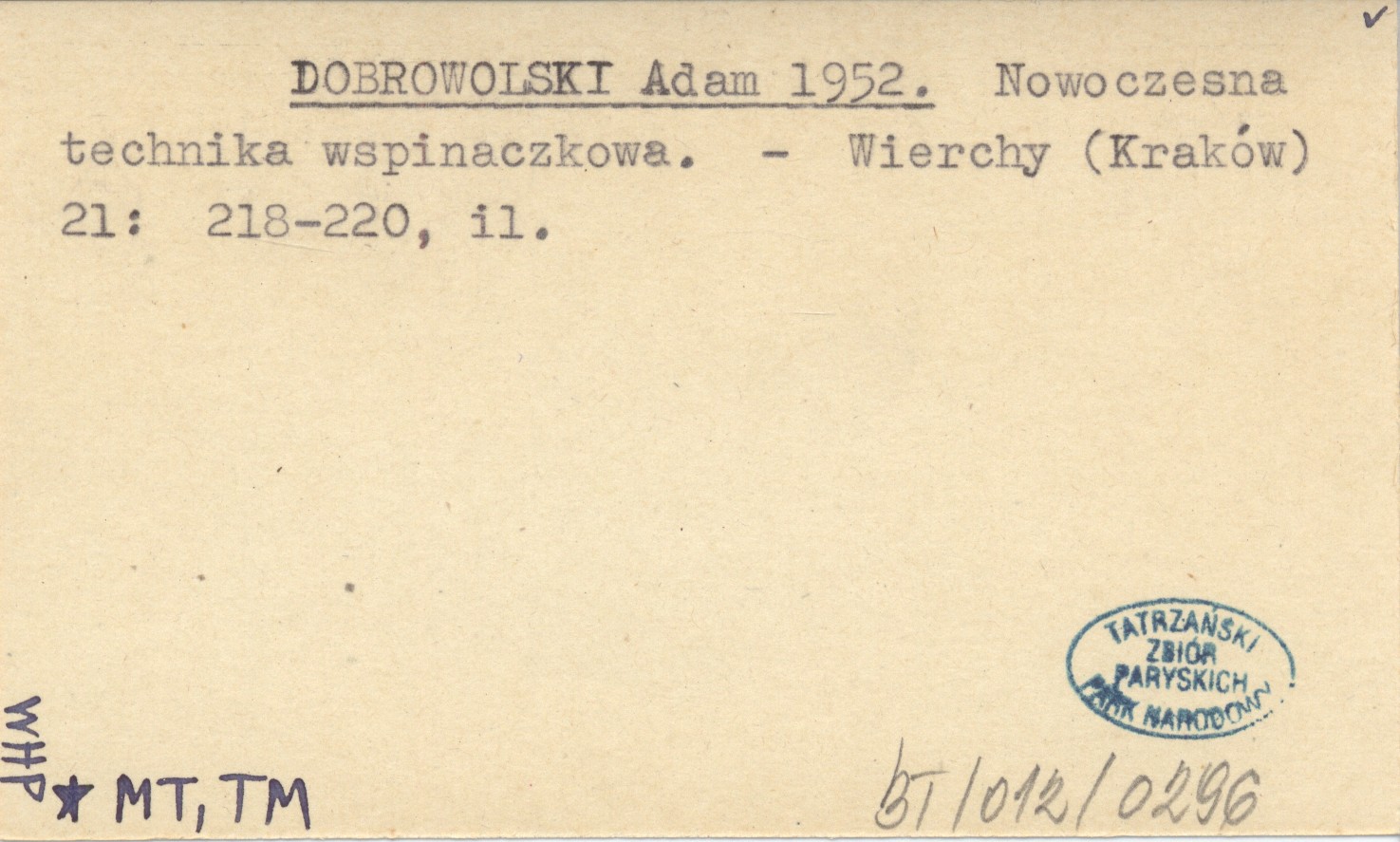 DOBROWOLSKI Adam 1952 Nowoczesna technika wspinaczkowa.