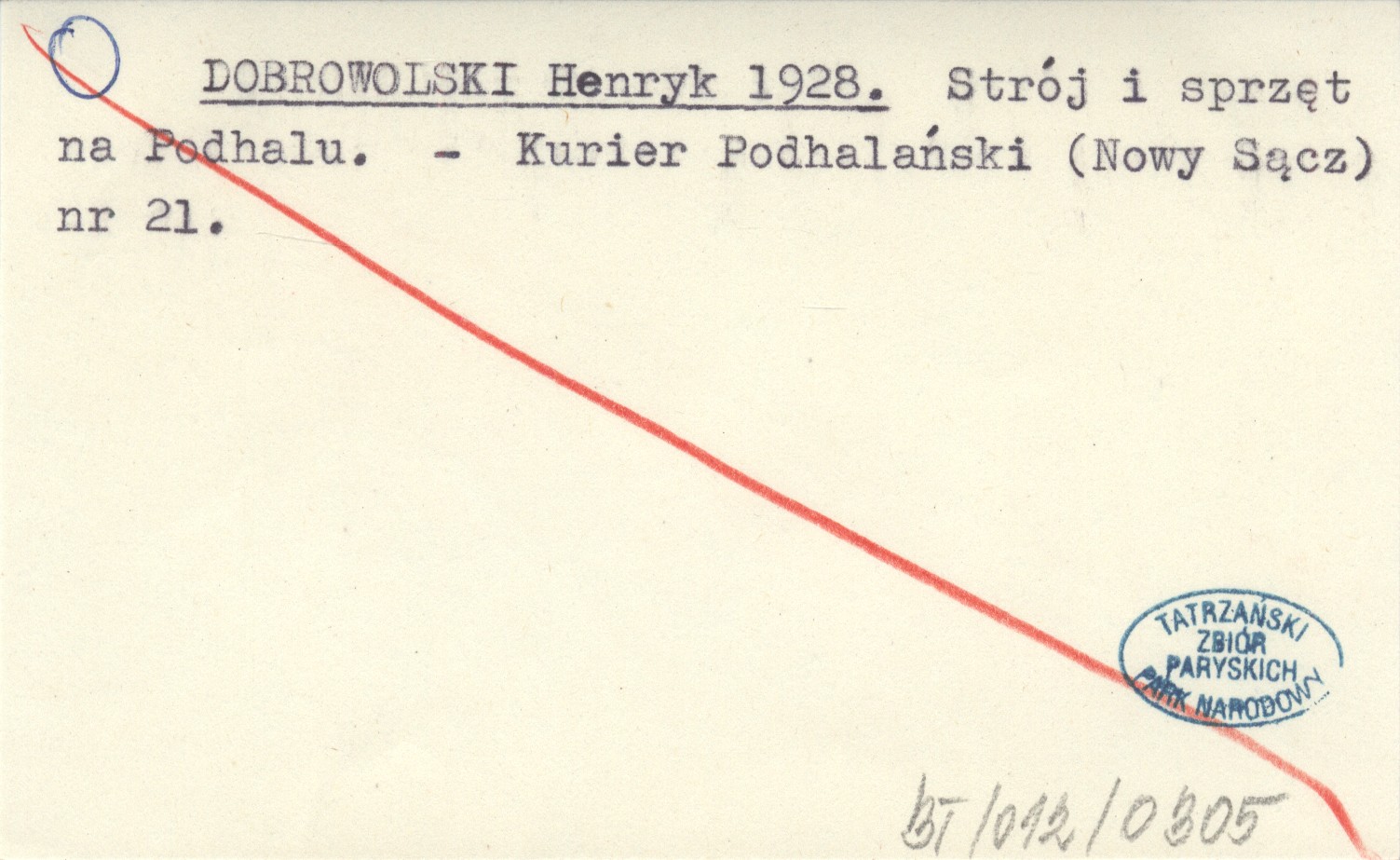 DOBROWOLSKI Henryk 1928 Strój i sprzęt na Podhalu.