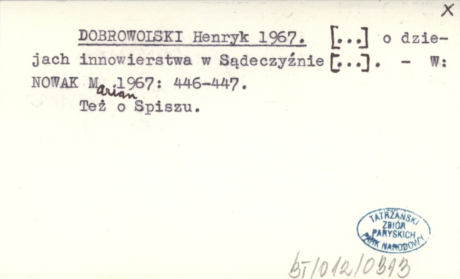 DOBROWOLSKI Henryk 1967 [...] o dziejach innowierstwa w Sądeczyźnie [...].