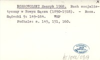 DOBROWOLSKI Henryk 1968 Ruch socjalistyczny w Nowym Sączu (1890-1918).