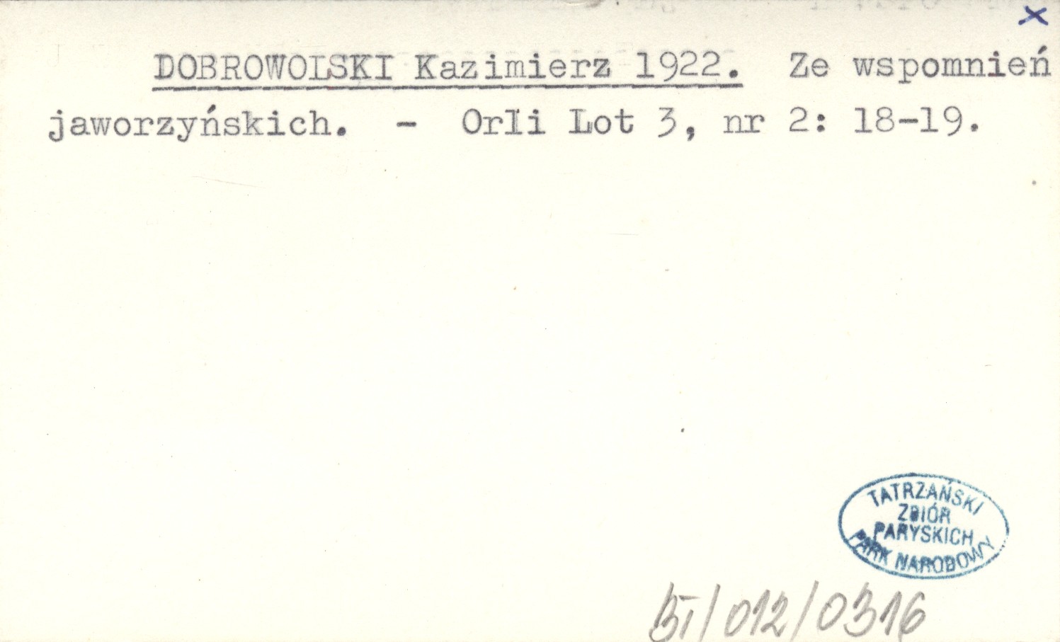 DOBROWOLSKI Kazimierz 1922 Ze wspomnień jaworzyńskich.