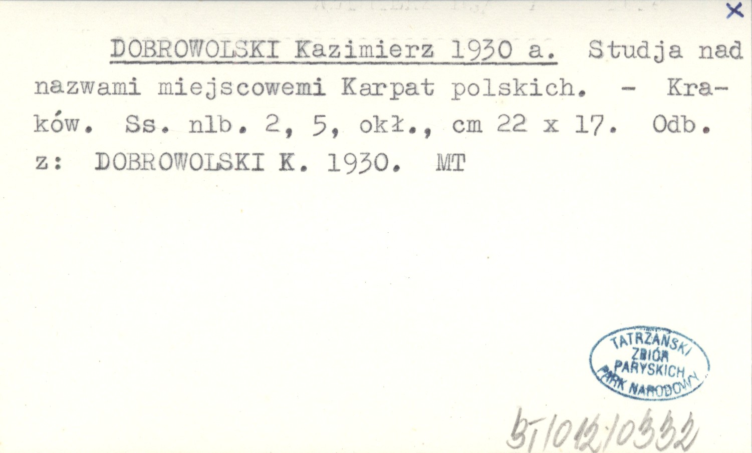 DOBROWOLSKI Kazimierz 1930 a Studja nad nazwami miejscowemi Karpat polskich.
