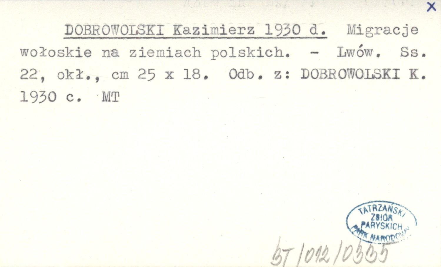 DOBROWOLSKI Kazimierz 1930 d Migracje wołoskie na ziemiach polskich.