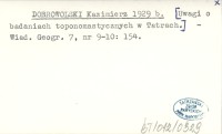 DOBROWOLSKI Kazimierz 1929 b [Uwagi o badaniach toponomastycznych w Tatrach.]