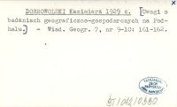 DOBROWOLSKI Kazimierz 1929 c [Uwagi o badaniach geograficzno-gospodarczych na Podhalu.]