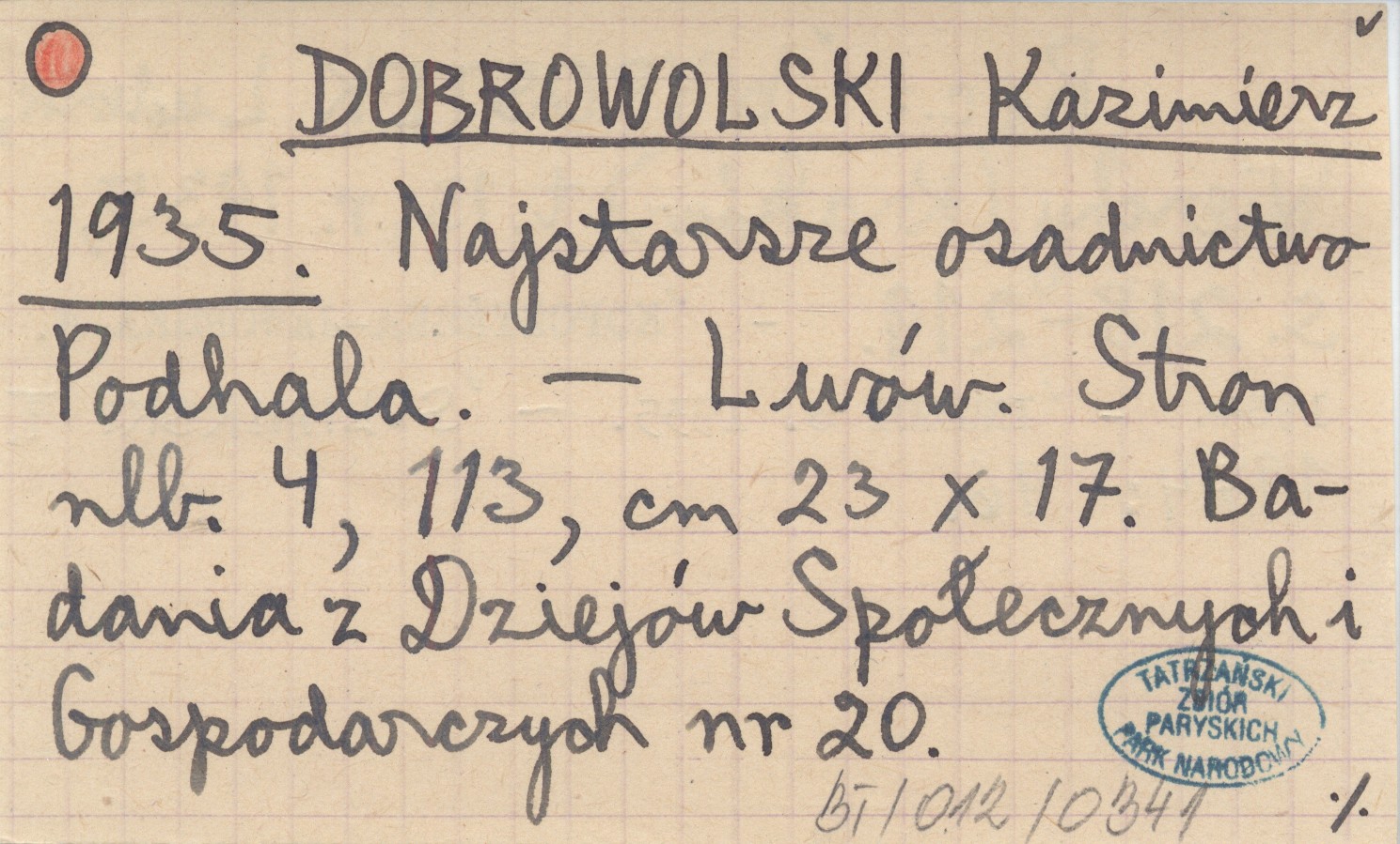 DOBROWOLSKI Kazimierz 1935 Najstarsze osadnictwo Podhala.