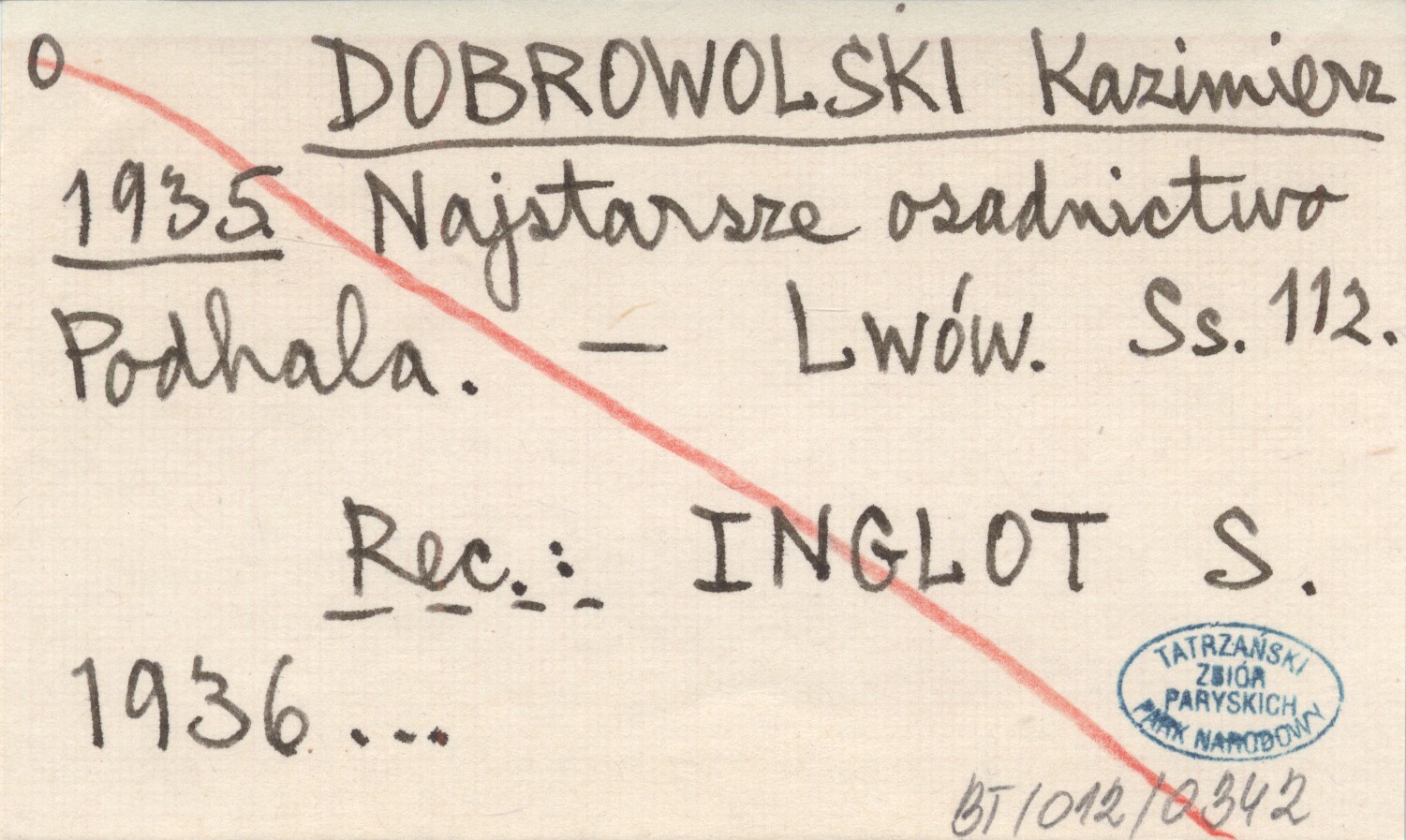 Lwów , 112 s. REC: INGLOT S. 1936...