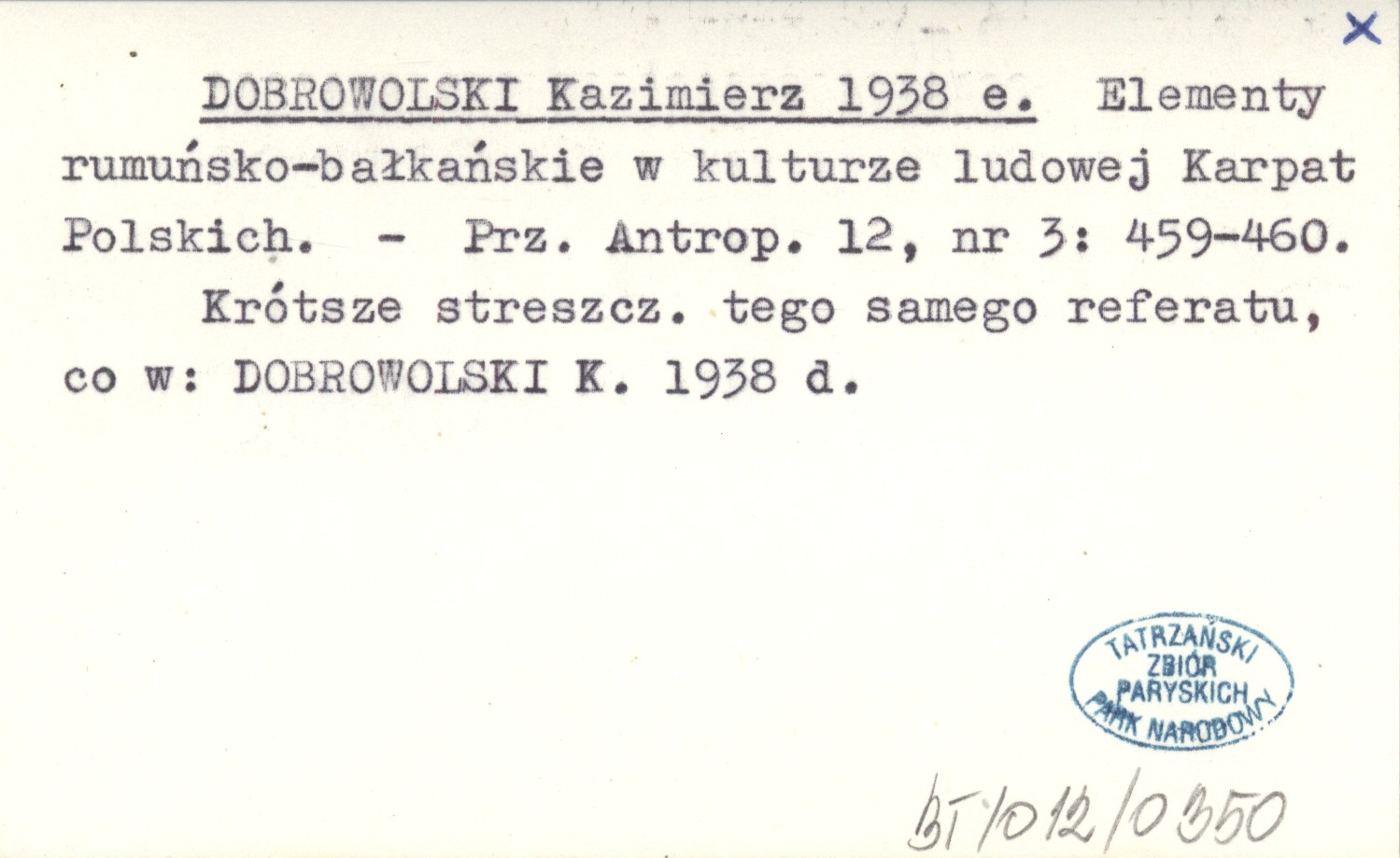 Przegląd Antropologiczny, 12, nr 3: 459-460. Krótsze streszcz. tego samego referatu, co w: DOBROWOLSKI K. 1938 d