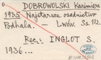 DOBROWOLSKI Kazimierz 1935 Najstarsze osadnictwo Podhala.