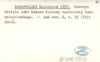 DOBROWOLSKI Kazimierz 1937 Seweryn Udziela jako badacz kultury społecznej ludu małopolskiego.