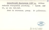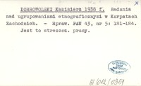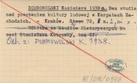 DOBROWOLSKI Kazimierz 1938 f Badania nad ugrupowaniami etnograficznymi w Karpatach Zachodnich.
