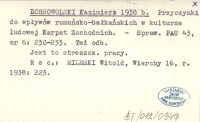 DOBROWOLSKI Kazimierz 1938 b Przyczynki do wpływów rumuńsko-bałkańskich w kulturze ludowej Karpat Zachodnich.